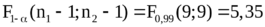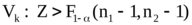 квантиль уровня 1-α распределения Фишера с n1-1 и n2-1 степенями свободы.