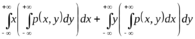 Двойной интеграл можно записать в виде повторных (внешний по x, внутренний по y и наоборот). Если предполагать непрерывность плотности по x и y, то, дифференцируя по переменным верхним пределам, получим