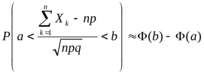 Получим формулу для вероятности нахождения числа успехов в заданном интервале: