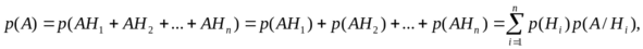 Можно считать событие А суммой попарно несовместных событий АН1, АН2,…, АНп. Тогда из теорем сложения и умножения следует, что