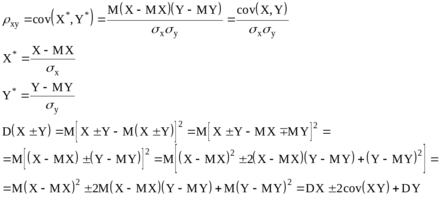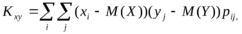 Kxy = μ1,1 = M((X – M(X))(Y – M(Y))). (9.8)