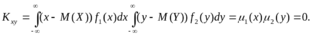 Корреляционный момент описывает связь между составляющими двумерной случайной вели-чины. Действительно, убедимся, что для независимых Х и Y Kxy = 0. В этом случае f(x,y) = =f1(x)f2(y), тогда