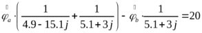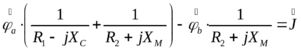 Теперь мы можем использовать метод узловых потенциалов. Примем потенциал узла c равным нулю