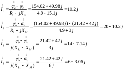 Теперь можем рассчитать токи в ветвях электрической цепи: