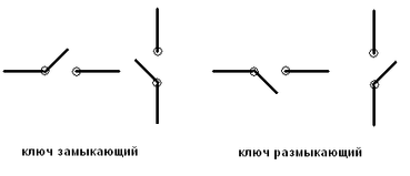 Примечание. В соответствии с ГОСТ, в схемах указано начальное положение ключа.