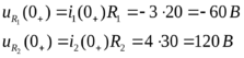 Так как токи не изменились сразу после коммутации, то напряжения на резисторах такие же: