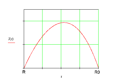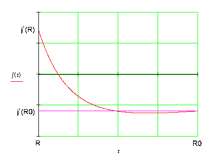 Циркуляция вектора J по окружности радиусом R<r<R0: