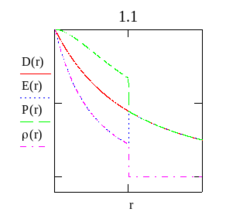 По результатам вычислений построить графически зависимости D(r)/D(R), E(r)/E(R), P(r)/P(R), ρ’(r)/ρ’(R) в интервале значений r от R до R0.