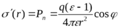 - косинус угла между нормалью между рассматриваемой поверхностью и поляризованностью, для внутренней поверхности