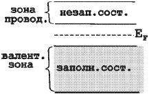 Тогда, с учётом принципа запрета Паули, при 0 температуре N эл-ов должны располагаться на уровнях осн. зоны, причём на каждом уровне будет находиться по два эл-а (с учётом двух спиновых сост-й эл-а для каждого стационарного состояния, полученного при решении уравнения Шредингера).