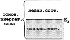 Таким образом, при 0 температуре в осн. энергетической зоне окажутся занятыми электронами нижние N/2 уровней зоны.