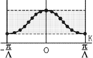 Рассмотрим энерг. зону, полностью занятую эл-ми в модели Кронига-Пенни. Сначала рассмотрим полностью занятую зону, затем эту зону с одним недостающим электроном.