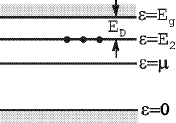 . Уровень хим. потенциала при достаточно низкой температуре расположен в глубине запрещенной зоны