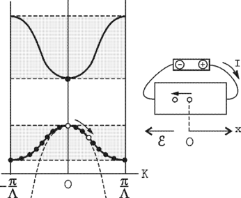 Заполненная эл-ми энерг. зона с одним недостающим эл-ом создаёт в одномерном твёрдом теле электр. ток, равный току одного положительного точечного носителя электр. заряда - дырки.