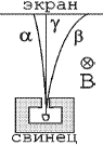 езерфорд. Эксперимент с расщеплением пучка радиоактивных лучей на три компоненты.