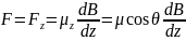 На точеный магн. момент в неоднородном магнитном поле действует сила