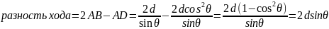 Отраженный луч будет интенсивным, только когда разность хода между двумя параллельными лучами, отраженными от соседних кристаллических плоскостей, будет равна целому числу n длины волны