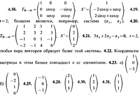 В задачах 4.37, 4.38 в произвольном пространстве Ln векторы е1, е2, ..., еn и е'1, е'2, ..., е'n заданы своими координатами в некотором базисе. Требуется доказать, что системы B = (е1, е2, ..., еn) и B' = (е'1, е'2, ..., е'n) − базисы в Ln и написать матрицу перехода TB→B'.