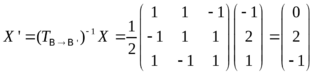 Обращая матрицу TB→B' и используя формулу (2), находим