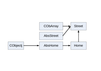 Класс AbsHome - абстрактный класс, в котором учтены общие свойства домов, размещаемых на улицах.