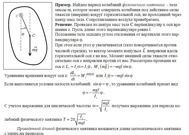 Физическим маятником называется твердое тело, колеблющееся относительно неподвижной горизонтальной оси (оси подвеса), не проходящей через центр тяжести.