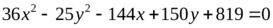 Задача 1,2,4. Определить тип кривой по заданному уравнению, привести к каноническому виду и построить кривую, найти координаты фокусов. Для эллипса и гиперболы определить эксцентриситет, составить уравнения асимптот для гиперболы; для параболы найти значение параметра, составить уравнения директрисы.