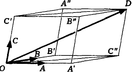 Параллелепипед, изобр. на рис. в ортонормированном базисе в V3 является прямоугольным,а точки A’,B’,C’ – ортогональными проекциями точки D на соответствующие прямые. Координаты вектора d=OD в ортонормированном базисе равны ортогональным проекциям этого вектора на направления векторов, образ. этот базис. Ортонорм. Базис в V3 принято обозначать, с учетом порядка, буквами i,j,k