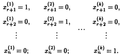 десь номер серии указан верхним индексом в скобках, а сами серии значений выписаны в виде столбцов. В каждой серии x(i)r+j=1 если j=i, и x(i)r+j=0 если j!=i
