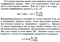Две пересекающиеся прямые образуют два смежных угла, один из которых совпадает с углом образованным нормальными векторами.А угол между 2мя вект можно вычислить при помощи скалярного произведения.