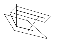 Рисунок нарисовать самим… (2 скрещ прямые, перенести одну прямую до пересечения с первой. Подсчитать их векторное произведение. Нарисовать. Нарисовать 2 плоскости парал YOZ