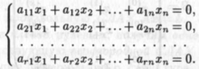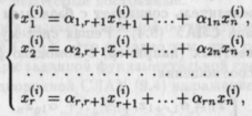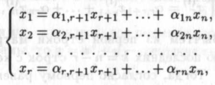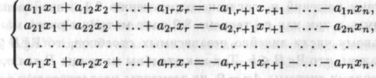 Не ограничивая общности, опять будем предполагать, что базисный минор матрицы А сосредоточен в верхнем левом углу, т.е. в первых г строках и столбцах. Тогда рассматриваемая однородная СЛАУ имеет те же решения, что и система