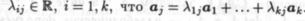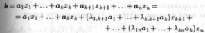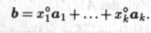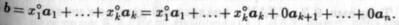 где а, — столбцы матрицы А, b — столбец свободных членов. Это означает, что последний столбец b в расширенной матрице системы является линейной комбинацией остальных столбцов. Выберем базисный минор матрицы А. Он содержит строки с номерами 1, 2, к и столбцы с теми же номерами, т.е.