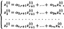 .Вычтем из первой строки матрицы В линейную комбинацию последних k=n-r строк с коэффициентами α1,r+1,…,α1n. Тогда согласно первому равенству из (2) в результате этих преобразований мы получим матрицу у кот. Первые r строк нулевые. Т.к. при этом ранг матрицы не меняется RgB=<n-r=k. Поскольку RgB=k, а последние k столбцов матрицы В линейно независимы, тро, согласно теореме о линейно независимых базисных сроках(столбцах) они явл. Базисными, =>первый столбец x по теорему о базисном миноре, явл их линейной комбинацией. Это значит что сущ. такие постоянные