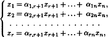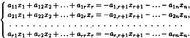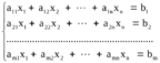Уравнение системы называют алгебраическими потому, что левая часть каджого из них есть многочлен от n переменных x1,…,xn,а линейными потому что многочлены имеют первую степень. a11, a12, …, amn — коэффициенты системы — и b1, b2, … bm — свободные члены — предполагаются известными. Индексы коэффициентов (aij) системы обозначают номера уравнения (i) и неизвестного (j), при котором стоит этот коэффициент, соответственно.