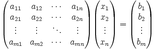 Уравнение системы называют алгебраическими потому, что левая часть каджого из них есть многочлен от n переменных x1,…,xn,а линейными потому что многочлены имеют первую степень. a11, a12, …, amn — коэффициенты системы — и b1, b2, … bm — свободные члены — предполагаются известными. Индексы коэффициентов (aij) системы обозначают номера уравнения (i) и неизвестного (j), при котором стоит этот коэффициент, соответственно.