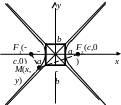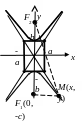 F2(0, c). В этом случае точка M(x, y) гиперболы будет удовлетворять уравнению || F1M | – | F2M || = 2b, b < c, параметр а вводится соотношением