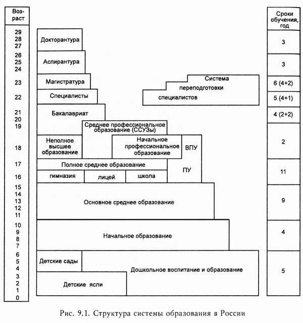 Система образования структурирована и по иным принципам, она включает ряд звеньев:
