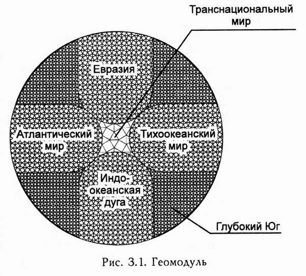 Новое мироустройство можно представить гексагональной, шестиярусной, моделью. В ее состав входят (конечно, отнюдь не на равных, и в этом смысле она однополярна) Североатлантический, Тихоокеанский, Евразийский регионы и “Южный”, расположенный преимущественно в районе Индоокеанской дуги.