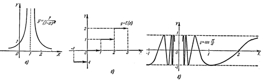 2°. Точки разрыва функции. Говорят, что функция f(х) терпит разрыв при значении x = x0 (или в точке x0), принадлежащем области определения функции или являющемся граничным для этой области, если в этой точке нарушается условие непрерывности функции.