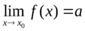 , если для любого ε > 0 существует число δ(ε) > 0 такое, что для любого x D из условия 0 < |x − x0| < δ(ε) следует неравенство |f(x) − a| < ε.