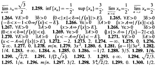), если для любого ε > 0 существует δ(ε) > 0 такое, что для любого x D из условия 0 < x − x0 < δ(ε) (−δ(ε) < x − x0 < 0) следует |f(x) − a| < ε. Аналогично вводится понятие одностороннего предела на бесконечности (