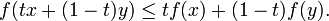 Функция называется выпуклой (или выпуклой вниз) на некотором интервале если для любых двух точек x, y из этого интервала и для любого числа t, принадлежащего отрезку [0,1], выполняется неравенство
