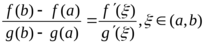 Пусть функции f(x) и g(x): 1) определены и непрерывна на [a,b]; 2) дифференцируемы на интервале (a,b); 3)