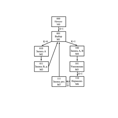 Для переключения вычислительного устройства в режим выполнения первой операции подаем на управляющий вход К = 0, подаём число А на входную шину, оно записывается на первый регистр.