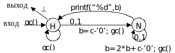 35. Пусть имеется переменная c и функция gc(), считывающая в с очередной символ анализируемой цепочки. Дана ДС с действиями:
