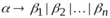 правило может определять порождение нескольких альтернативных цепочек, отделяемых друг от друга символом вертикальной черты «|» (читается: «или»).