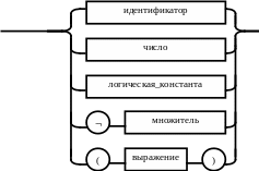 <множитель>:: = <идентификатор> | <число> | <логическая_константа> |