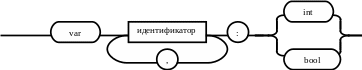 Описание синтаксиса модельного языка М с помощью диаграмм Вирта представлено на рисунке 2.2.