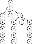 Пример 2.12. Дано выражение a+5*b. Дерево разбора выражения и динамика содержимого стека представлены на рисунке 2.8.