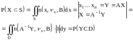 Рассмотрим произвольную область S, принадлежащую пространству элементарных событий случайной многомерной величины X. Ей соответствует область D в пространстве элементарных событий случайного вектора Y. При этом
